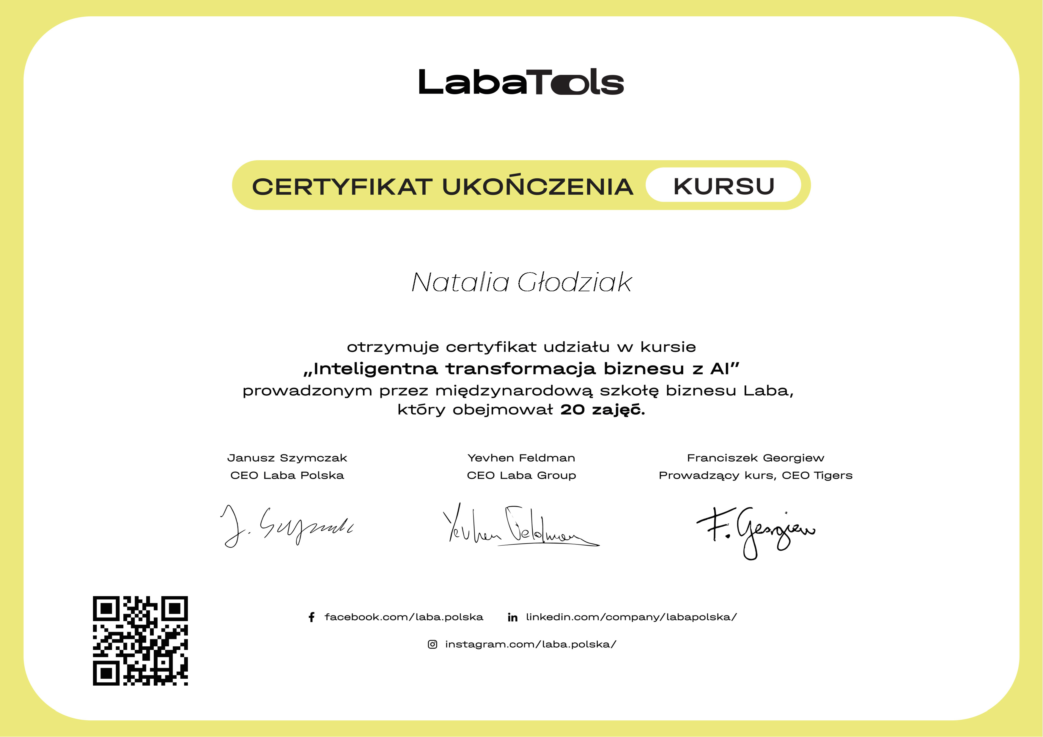 Mój rozwój i wiedza są poparte certyfikatami ukończenia prestiżowych kursów i szkoleń. To Twoja gwarancja pracy z profesjonalistką, która ciągle aktualizuje swoje umiejętności.